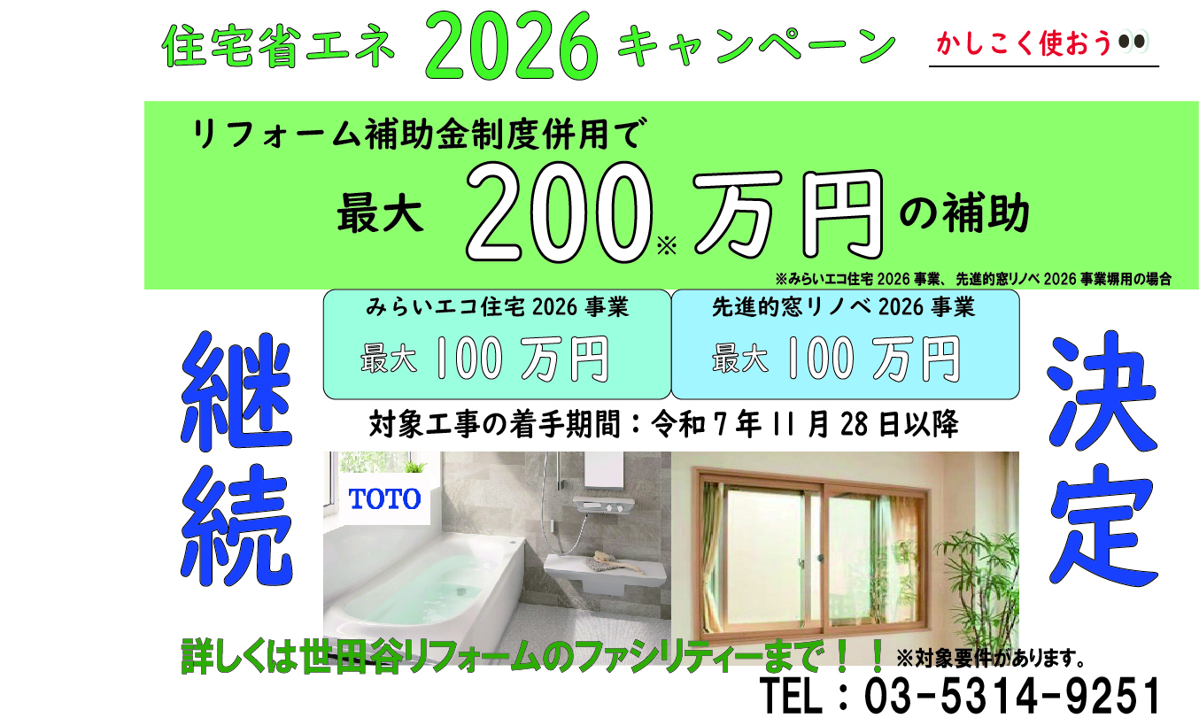 NEW! 住宅省エネ2026キャンペーン継続決定!